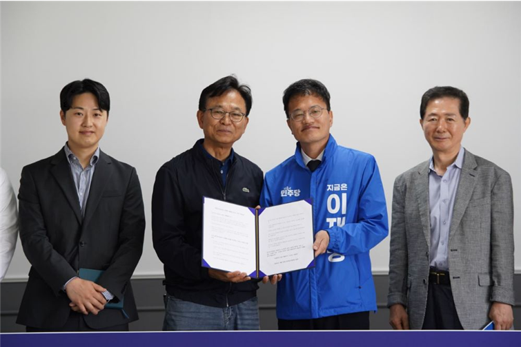 왼쪽 두 번째 김진범 한국농어민당 공동대표, 세 번째 박주민 기본사회위원회 위원장 지지선언 협약식