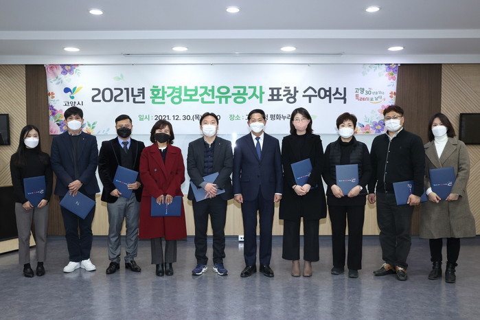 [부자동네타임즈 김인수기자] 고양시가 지난 30일 고양시청 평화누리실에서 2021년도 환경보전 유공자에 대한 표창 수여식을 개최했다.