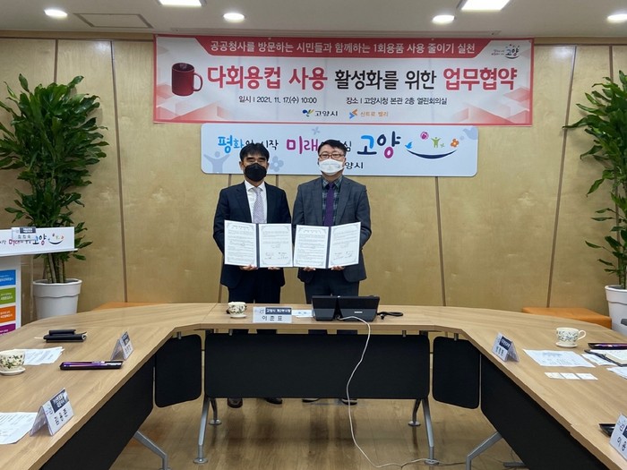 [부자동네타임즈 김인수기자] 고양시와 주식회사 신트로밸리(대표이사 김용준)가 다회용컵 사용을 활성화하기 위한 업무협약을 17일 체결했다.
