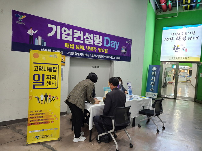 [사진설명] 찾아가는 더잡(JOB) 고양일자리발굴단이 지식산업센터에서 상담을 진행하고 있다.