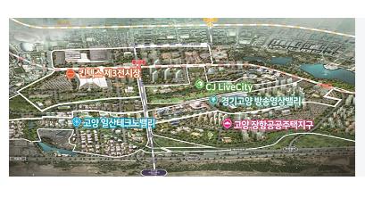 한편, 고양 일산테크노밸리 인근 대규모 사업 구역에는 일산테크노밸리, 방송영상밸리, K-컬처밸리(CJ라이브시티 포함), 킨텍스 제3전시장, 장항공공주택단지(한국예술종합학교 유치 추진 중), GTX환승센터, 도심공항터미널 등이 포함되어 있다.