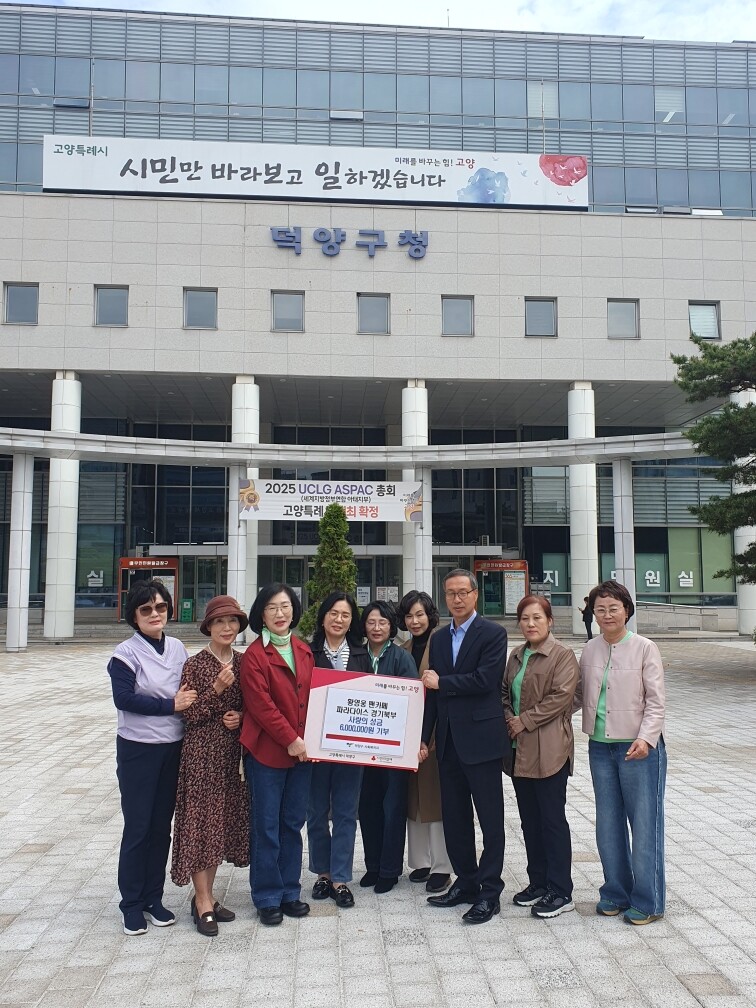 [부자동네타임즈 = 김인수 기자] 고양특례시 덕양구는 지난 22일, 가수 황영웅의 팬카페 파라다이스 경기북부모임에서 생활이 어려운 이웃들을 위한 성금 600만 원을 기부했다고 밝혔다.