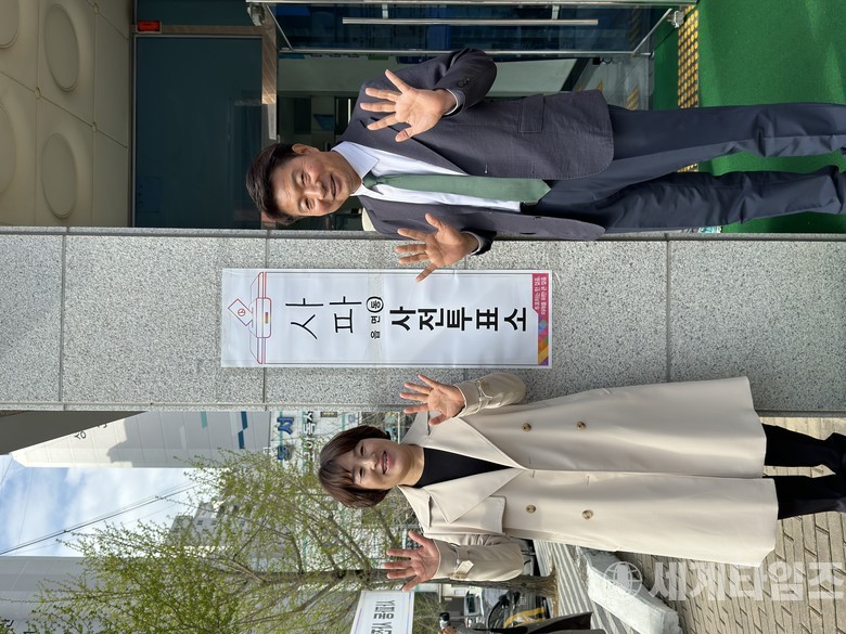 사전투표 후 포즈를 취하는 창원시 성산구 녹색정의당 여영국 후보 부부