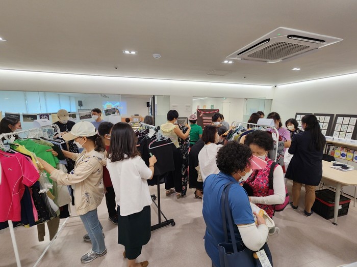 [부자동네타임즈 김인수기자] 고양시자원봉사센터는 지난 9월 15일「2022 자원봉사 아카데미 클래스 “옷장정리 딱! 도와줌 – 지구를 지키는 패셔니스타”」를 진행했다. 고양시 자원봉사자들과 함께 점점 증가하고 있는 의류 쓰레기 문제의 심각성을 이해하고 자원순환 체험 활동을 통해 지구와 환경을 생각해보는 시간을 가졌다.