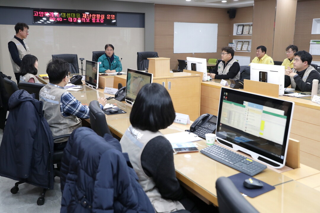 고양시는 강설 예보에 따라 이날 오전 6시부터 사전제설작업에 들어갔다. 오전 8시 40분 대설주의보가 발효되자 비상근무 1단계를 실시했다. 재난대응담당관, 도로관리과, 구청 안전건설과 등 주요 제설부서를 비롯해 동행정복지센터, 일반부서 근무자 등 총 1,355명이 제설작업에 투입됐다.