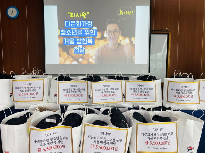 고양시 다문화가족지원센터에 전달된 겨울 방한복은 코로나19로 힘든 시기를 보내고 있는 다문화가정 청소년 40명에게 최시원 씨가 보내는 영상 응원 메시지와 함께 전달됐다.