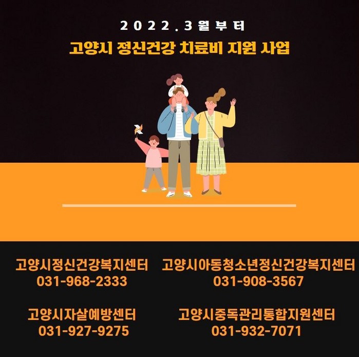 고양시 정신의학과 치료비 지원에 대한 자세한 사항은 고양시정신건강복지센터로 문의하면 된다.