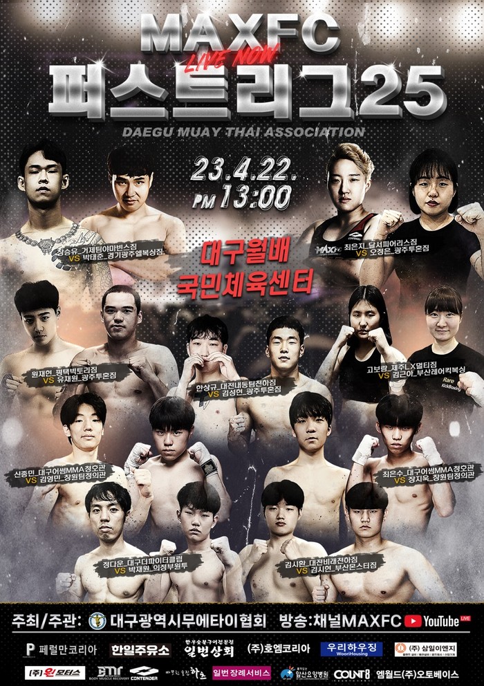한편, 제1회 달서구청장배 무에타이 선수권 대회 및 ‘MAXFC 퍼스트리그 25’는 전석 무료 입장으로 진행되며, MAXFC 유튜브 채널에서 실황 중계된다.