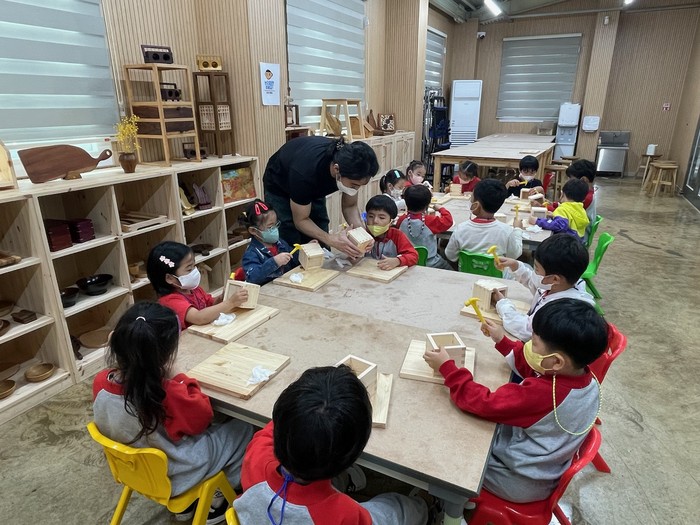 목공체험은 ▲유아목공반 ▲개인목공반 ▲가족목공반 ▲목공교육반 등 체험자의 연령, 수준 등에 맞춰져 운영된다. 체험 프로그램은 유아도 쉽게 만들 수 있는 공룡자동차, 연필꽂이 등의 소품부터 도마, 테이블, 의자 등의 인기 있는 생활용품 위주로 구성된다.