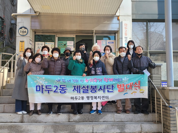 제설봉사단은 마두2동 직능단체 53명으로 구성됐으며, 겨우내 적극적인 제설 작업을 통해 주민들의 관내 안전통행을 마련해 지속적인 이웃사랑을 실천할 예정이다.