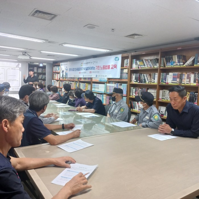 [부자동네타임즈 김인수기자] 지난 24일 고양시 노동권익센터가 주관이 되어 호수마을 3단지 아파트에서 관리소장 및 인사담당자, 경비원, 미화원을 대상으로 기초노동법률 교육을 실시했다.