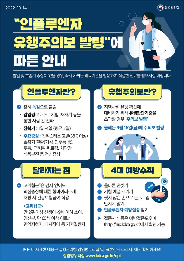 [부자동네타임즈 김인수기자] 고양특례시(시장 이동환) 일산서구보건소가 독감 인플루엔자 유행이 본격화됨에 따라 독감 예방 수칙과 준수사항을 지켜달라고 당부했다.