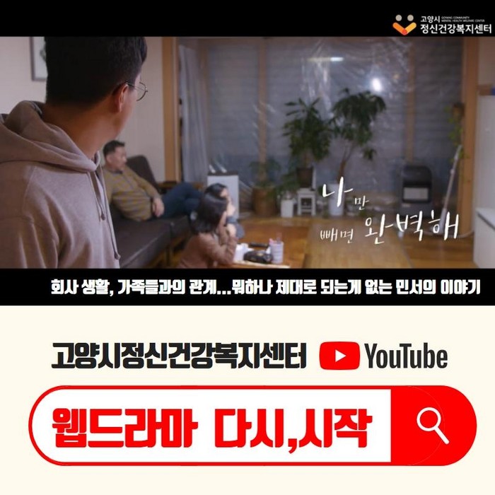 웹드라마는 고양시정신건강복지센터 홈페이지와 유튜브 채널을 통해 시청할 수 있다.