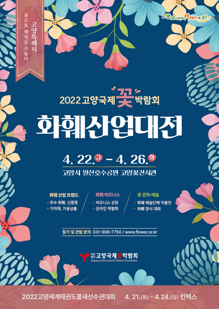 고양시 대표 축제 ‘꽃박람회’가 2년 만에 돌아온다. 올해 꽃박람회의 공식 명칭은 ‘2022 고양국제꽃박람회 화훼산업대전’으로, 코로나19 확산 방지와 침체된 화훼산업 활성화를 위해 화훼 관계자 중심의 비즈니스 행사로 개최된다.