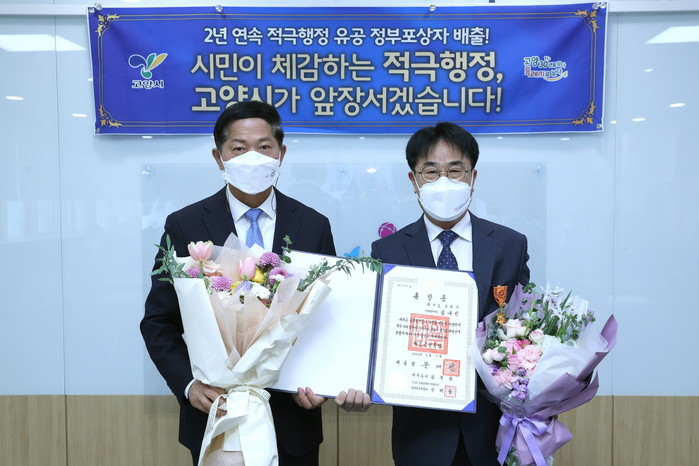 이재준 시장은 “코로나19로 어려운 환경 속에서 고양시 공무원의 적극행정 성과로 2년 연속 정부포상자를 배출하게 되어 매우 자랑스럽다”며, “적극행정이 공직문화로 확고히 뿌리내릴 수 있도록 공무원의 전문성과 창의성을 더욱 강화해 시민이 공감할 수 있는 적극행정을 펼쳐주길 바란다”고 당부했다.