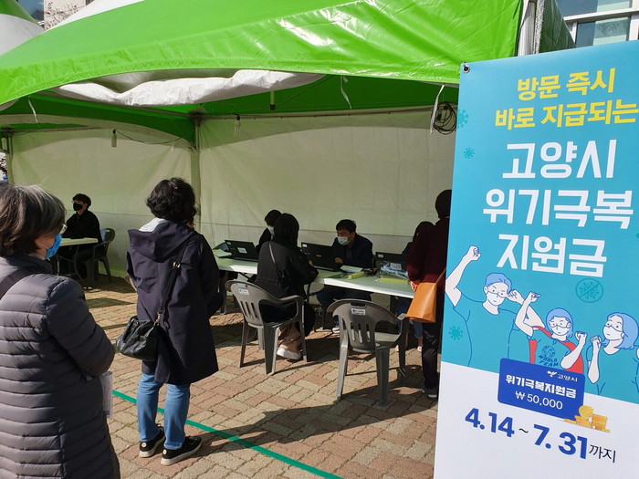 시에 따르면 5월 11일까지 고양시 위기극복지원금 신청자는 95만 5,941명으로 전체 지급대상자(107만 명)의 89.1%이며 지급액은 478억 원이다.