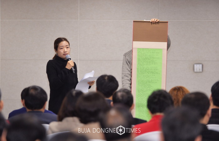 | △정 씨는 3일 시청 중회의실에서 열린 '시민의 목소리 청해 듣는 날'에 나와 시 간부공무원들을 대상으로 장애인 부모로서의 삶에 대해 담담하며 진솔하게 이야기해 큰 반향을 불러 일으켰다 |