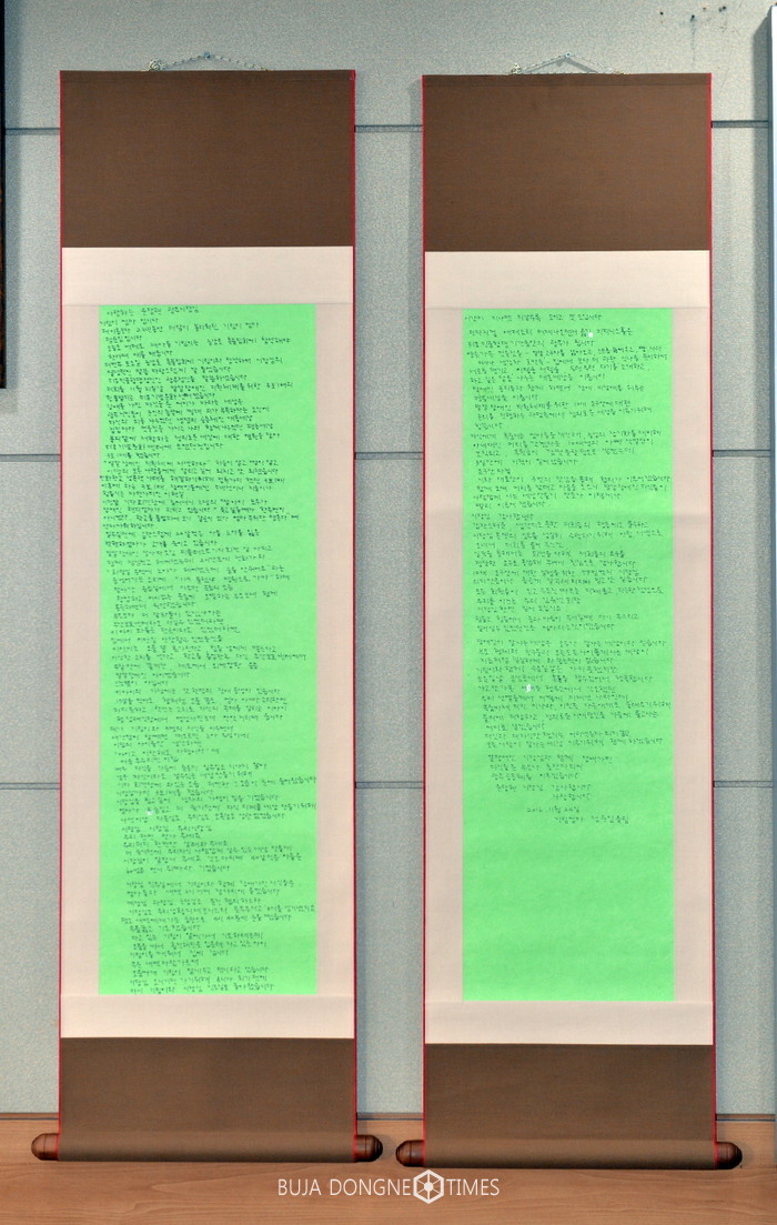 | △윤장현 광주광역시장 집무실에 최근 한 통의 편지가 족자로 제작돼 걸렸다 |
