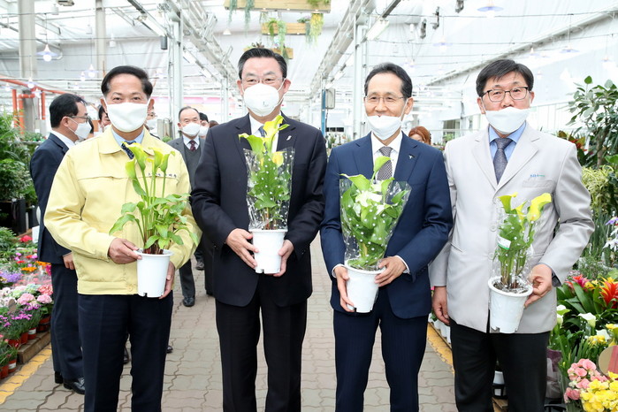 이는 코로나19로 힘들어 하는 화훼농가도 돕고, 고생하는 의료진 및 관련자들의 마음을 위로하기 위한 것으로 고양시 병원 및 보건소, 소방서 등에 분화 100,000본 중 8,000본을 지원키로 했다.