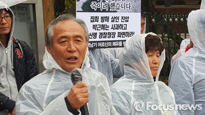 지난 14일 서울 광화문에서 열린 ‘민중총궐기 대회’에 참여한 백씨는 경찰의 물대포를 맞고 쓰러져 뇌출혈을 일으켜 병원으로 옮겨졌다.