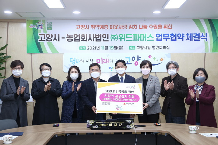 이번 협약은 고양시 취약계층에 대한 사회적 관심과 후원을 통해 복지사각지대를 해소하고, 사회적 약자에게 김치 나눔 서비스를 통해 건강관리 및 정서적 지지를 지원하기 위해 마련됐다.