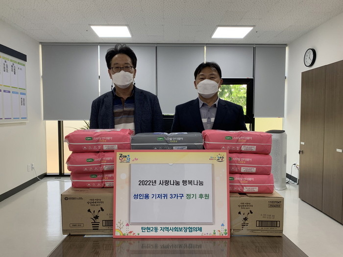 이종신 탄현2동장은 “뇌병변 장애인, 치매노인 가구, 거동불편 고령어르신 가구의 경우 기저귀가 생필품이지만 비용 부담이 만만치 않다. 이번 후원이 각 가정에 도움이 될 수 있을 것으로 예상한다. 관내 어려운 이웃에 관심을 가져주신 후원자께 감사드리며, 나눔 문화 확산을 위해 더욱 노력하는 탄현2동 행정복지센터가 되겠다”고 전했다.