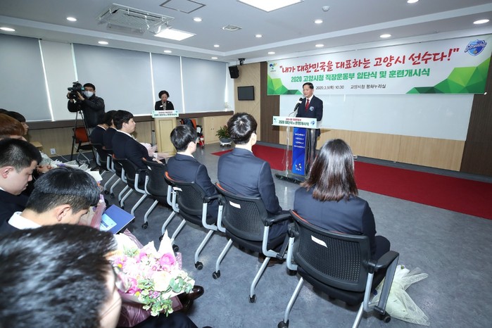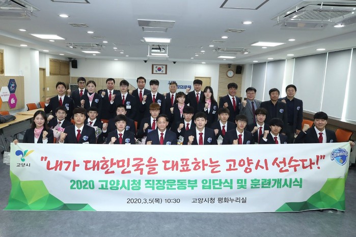 [부자동네타임즈 김인수기자] 고양시(시장 이재준)는 1987년 고양시 직장운동부가 창단 이래 처음으로, 2020 고양시 직장운동부 신규선수 입단식 및 훈련 개시식을 3월 5일 고양시청 평화누리실에서 가졌다.