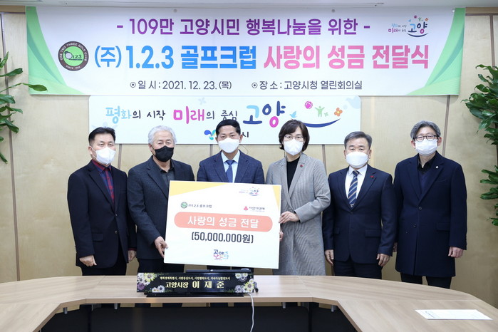 [부자동네타임즈 김인수기자] 고양시는 지난 23일 주식회사 1.2.3 골프크럽(대표 한제걸)에서 연말을 맞아 성금 5000만원을 고양시 저소득층을 위해 기부했다고 밝혔다.