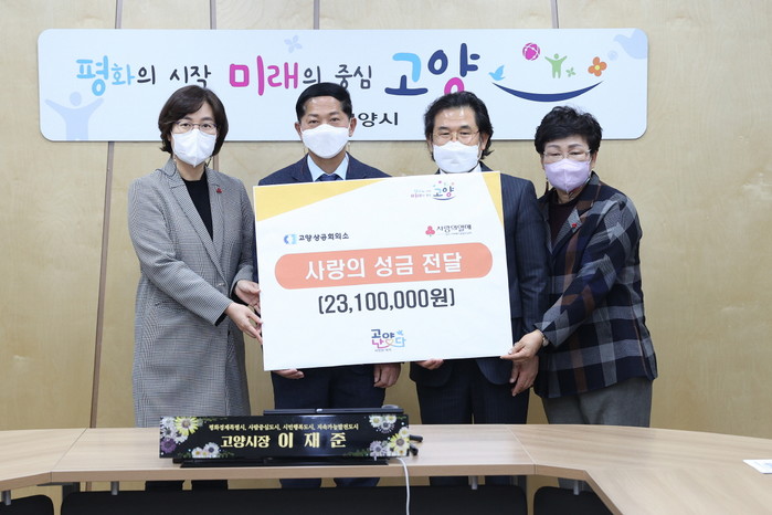 이재준 고양시장은 “고양시 기업의 기부문화 정책에 기여하여 기업과 시민이 화합하는 모습을 보여주시는 고양상공회의소에 진심으로 감사드리며, 전달받은 성금과 따뜻한 마음은 도움이 필요한 분들에게 잘 전달하겠다”고 밝혔다.