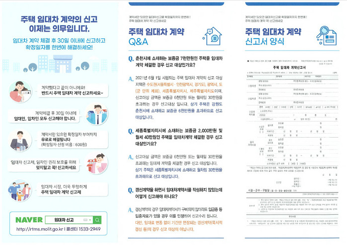 구청 관계자는 “덕양구청은 관내 행정복지센터 및 구청에 주택임대차 신고제에 대한 홍보물을 비치해 방문하는 민원인에게 배부하고 있다.”라며 “주택임대차 계약 신고제가 의무화됨에 따라 미신고, 지연신고 등에 따른 시민 불이익이 최소화 될 수 있도록 지속적인 홍보 및 안내에 힘쓰겠다.”라고 말했다.