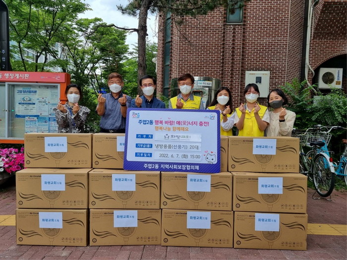 [부자동네타임즈 김인수기자] 일산서구 주엽2동행정복지센터(동장 박교원)는 지난 6월 7일 화평교회(고양시 덕양구 소재)에서 선풍기(총 140만 원 상당)를 전달받아 독거어르신과 장애인, 복지사각지대 대상자 20세대에 이웃사랑을 전했다.