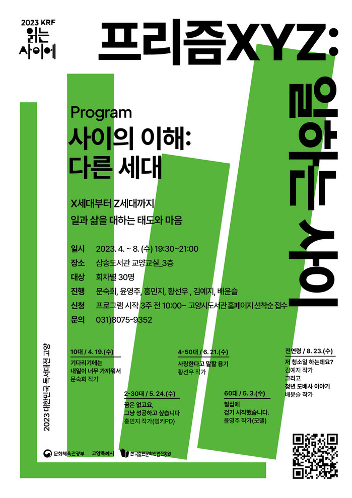 고양시는 제10회 2023 대한민국 독서대전을 유치하여 기획 프로그램 ‘프리즘 XYZ: 일하는 사이’를 운영한다.