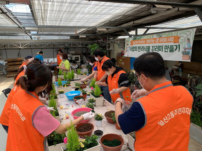 이날 주민자치회장, 주민자치위원, 일산2동장 등 20여 명은 화훼단지에서 직접 화분을 제작했으며 30개의 반려식물 꾸러미를 만들어 사회복지법인을 통해 일산2동 어르신들에게 전해드렸다.