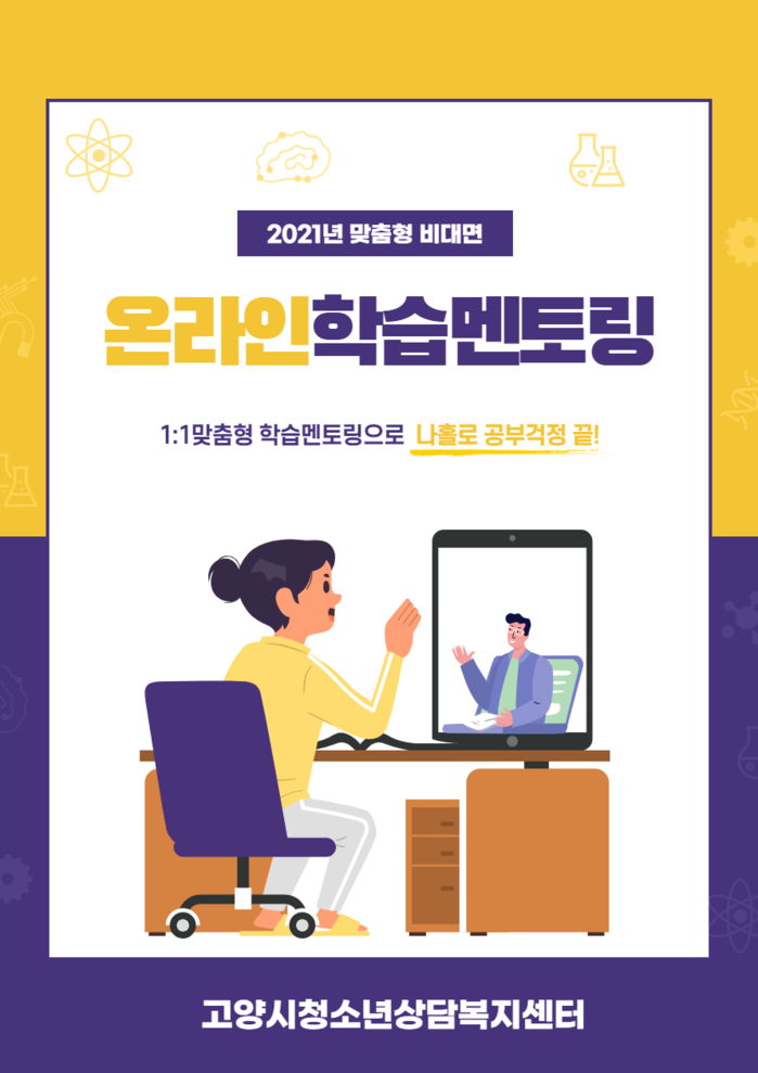 [부자동네타임즈 김인수기자] 고양시청소년재단(이사장 이재준) 산하기관인 고양시청소년상담복지센터(센터장 황상하, 이하 센터)는 "코로나19가 지속되는 상황 속에서 취약해질 수 있는 청소년의 시간 관리와 학습역량을 향상시키기 위해 4월20일부터 8회기 동안 청소년 250명을 대상으로 비대면 형식의 1:1 맞춤형 학습멘토링을 실시한다."고 밝혔다.