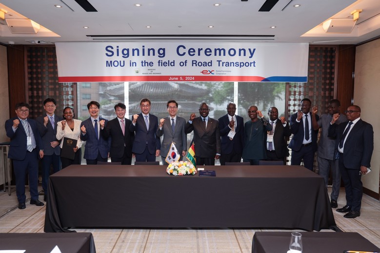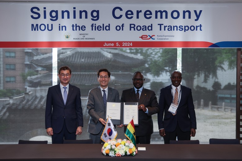 한국도로공사(사장 함진규)는 6월 5일(수) 서울 웨스틴 조선 호텔에서 가나 도로부(장관 프란시스 아센소-보아케)와 도로.교통 분야 교류 활성화 및 상호 발전을 위한 업무협약을 체결했다고 밝혔다.