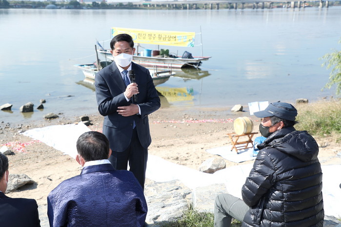 [부자동네타임즈 김인수기자] 고양시가 20일(수) 한강풍어와 고양시의 행운을 기원하며 황금장어를 한강으로 다시 돌려보내는 ‘신비한 물고기 황금장어 한강행주 방생제’를 열었다.