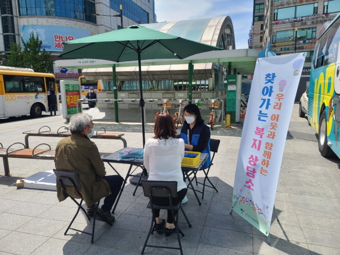 올해 계속되는 코로나19로 인해 처음 실시하게 된 ‘찾아가는 출장상담소’에서는 방역 지침에 따라 일정한 거리를 두고 긴급복지사업과 경기도형 긴급복지사업, 또한 각종 사회복지서비스에 대한 상담 및 안내를 진행했다.
