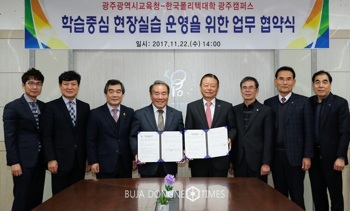 광주광역시 교육청(교육감 장휘국)과 한국폴리텍V대학(학장 안희석)은 11월 22일 특성화고 학습중심 현장실습 업무 협약을 체결했다.