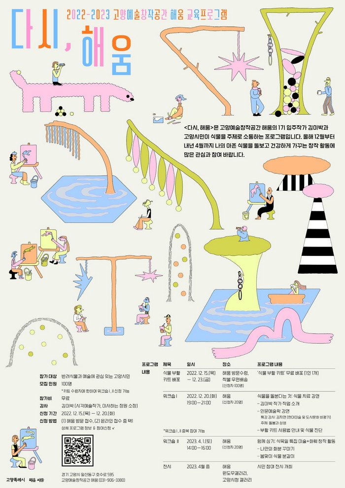 ‘다시, 해움’은 고양예술창작공간 해움의 첫 시민 참여 프로그램이다. 식물을 주제로 활동하는 김이박 1기 입주 작가가 진행을 맡는다.