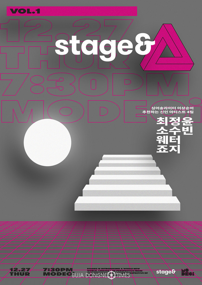 27일 개최될 첫 공연에는 싱어송라이터 이상순이 ‘내년이 기대되는 신인 아티스트’로 추천한 최정윤, 소수빈, 웨터, 죠지가 무대에 오른다. 지난 11일 인터파크를 통해 티켓 예매를 시작한 지 30초 만에 전석이 바로 매진될 정도로 가능성을 입증받은 실력파 아티스트들이다.