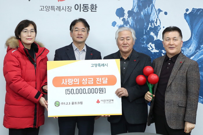 [부자동네타임즈 김인수기자] 고양특례시(시장 이동환)는 지난 12일 ㈜1.2.3 골프클럽에서 연말을 맞아 성금 5천만 원을 고양시 저소득층을 위해 기부하였다고 밝혔다.