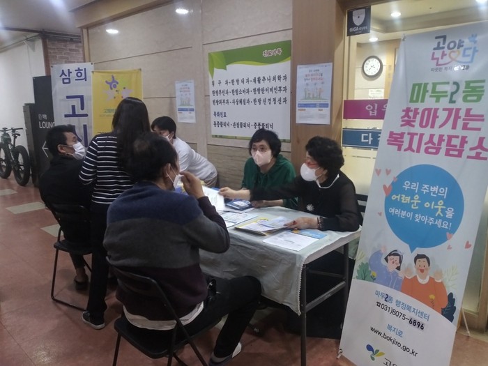 [부자동네타임즈 김인수기자] 고양시 마두2동 지역사회보장협의체(민간위원장 양정자)는 지난 19일 고양시흰돌종합사회복지관과 합동으로 마두역 인근 삼희골드프라자 빌딩 10층 삼희고시텔에서 찾아가는 복지상담소를 운영했다.