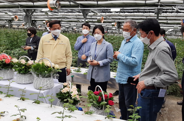 한편, 시는 장미의 국산화를 통한 로열티 문제 해결을 위해 국내 환경에서 잘 자라고 품질이 우수한 신품종 개발에 주력해 왔다. 올해는 ‘장미 신품종 육성 테스트 베드’ 사업을 신규로 실시해 시 육성장미의 보급을 위한 대표 장미 농가 발굴을 시도하고 있다. 이를 통해 농가 실증에 적합하고 가격 경쟁력을 갖는 품종을 조기에 탐색하는 데 도움이 될 것으로 보인다.