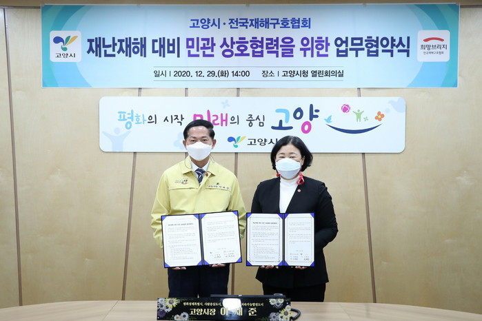 [부자동네타임즈 김인수기자] 고양시는 지난 29일 시청 열린회의실에서 희망브리지 전국재해구호협회와 재난재해 대비 민관 상호협력을 위한 업무협약을 체결했다. 이는 각종 재난재해로부터 시민 피해를 예방하고 피해의 신속한 복구 및 지원을 추진하기 위한 것이다.
