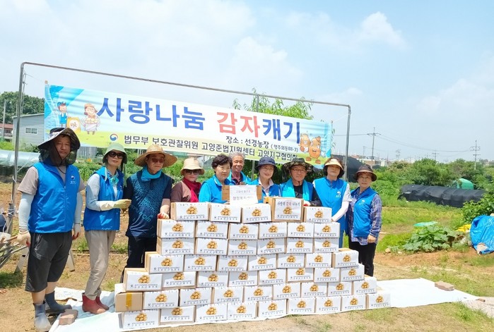 법무부보호관찰위원 고양지구협의회에서는 고양시 덕양구 행주외동 소재 밭에서 여름에는 감자, 가을에는 김장용 무·배추를 수확해 해마다 저소득 어르신과 취약계층에게 사랑을 전해 왔다.