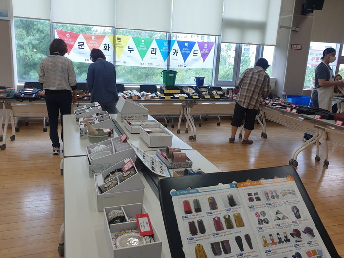 문화누리장터는 문화누리카드 이용 정보가 부족한 지역 어르신들 대상으로 장인, 무형문화재, 공예작가들이 제작하는 수공예문화상품을 구매 하도록 상품을 전시하는 자리로 현장에서 견본을 보고 문화누리카드로 구매하면 무료로 집으로 배송된다.