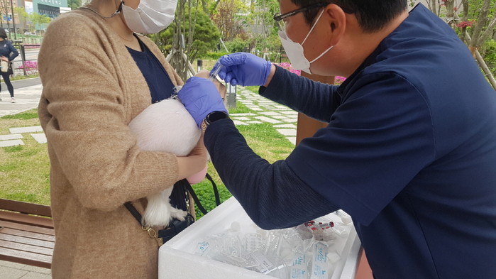 예방접종은 동물보호문화 확산과 시민 건강을 위해 무료로 진행됐다. 관내 130여두 반려견들이 수의사의 도움으로 예방접종을 받았다.