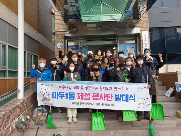 [부자동네타임즈 김인수기자] 고양시 마두1동 행정복지센터(동장 김경희)는 지난 19일 안전한 겨울나기를 위해 동 직원과 통장협의회, 주민자치회, 부녀회, 시민안전지킴이 등 직능단체 회원 20여명이 참석한 가운데 마두1동 제설봉사단 발대식을 개최했다.