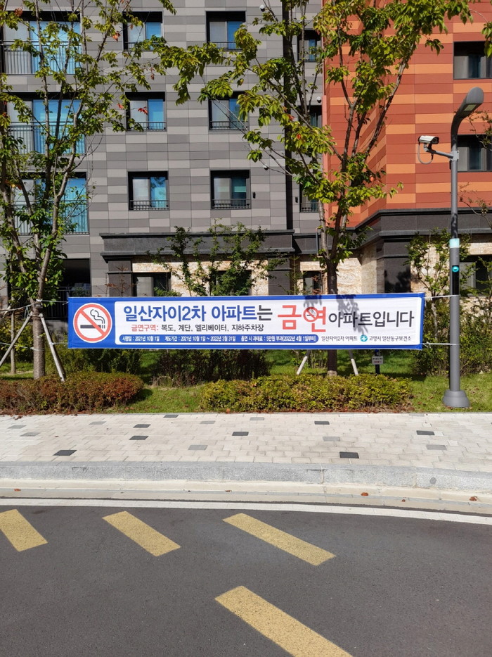 일산자이2차 아파트는 10월 1일 금연아파트로 지정되었으며, 2022년 3월 31일까지 6개월 동안 홍보와 계도기간을 거치게 된다. 그리고 4월 1일부터 아파트 내 지정된 금연구역에서 흡연 적발 시 과태료 5만원이 부과된다.