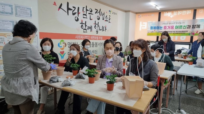 독거노인 원예치유 지원사업은 독거노인의 고독사 방지 및 정서적 안정 제공을 위해 독거노인 가정에 방문하여 반려식물을 보급하고 원예치유 프로그램을 진행하는 사업이다.